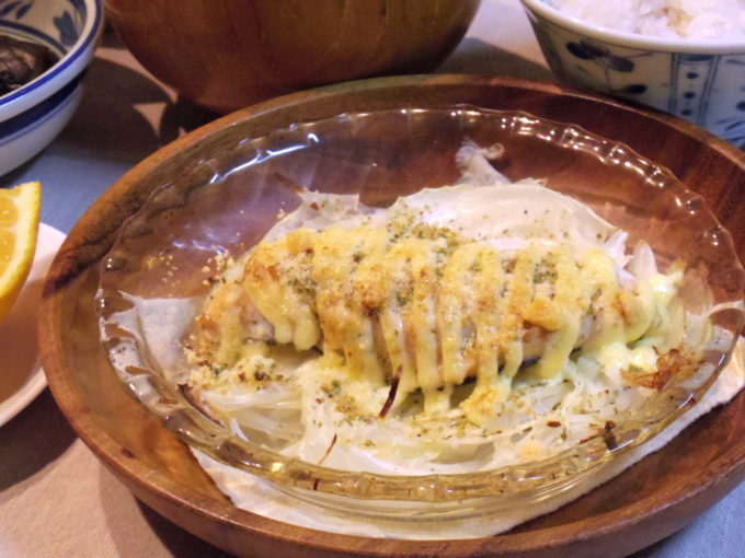 サケにはマジックソルト、マヨネーズ、粉チーズを振って、オーブントースターで焼きました